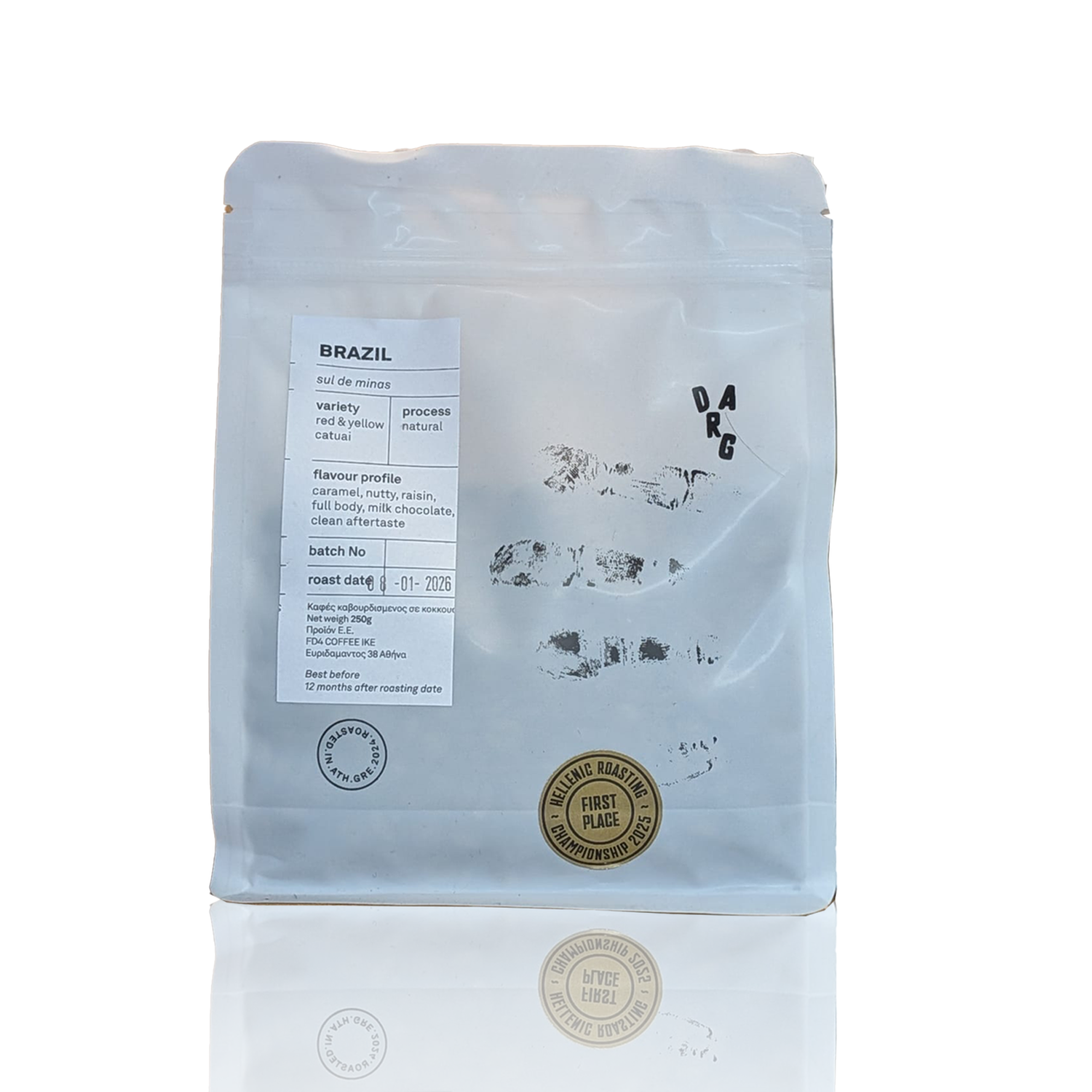 Brasil Sul de Minas · Natural · Tueste Medio · Caramelo, Chocolate con Leche y Frutos Secos · Café en Grano 250g/500g